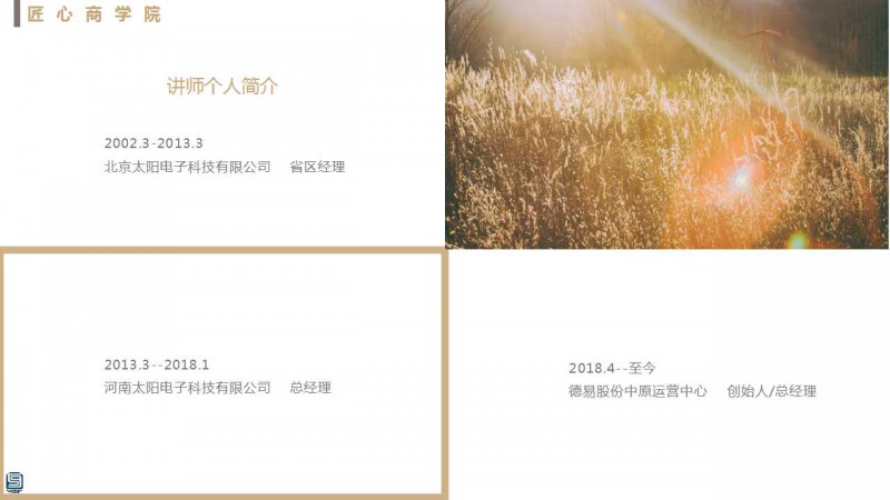 三、15:50-16:00 課間休息 《供給側(cè)改革再議內(nèi)部細(xì)節(jié)管理(二)》——德易股份遠(yuǎn)程移動(dòng)醫(yī)療中原運(yùn)營(yíng)中心 創(chuàng)始人/總經(jīng)理 陳明豪先生