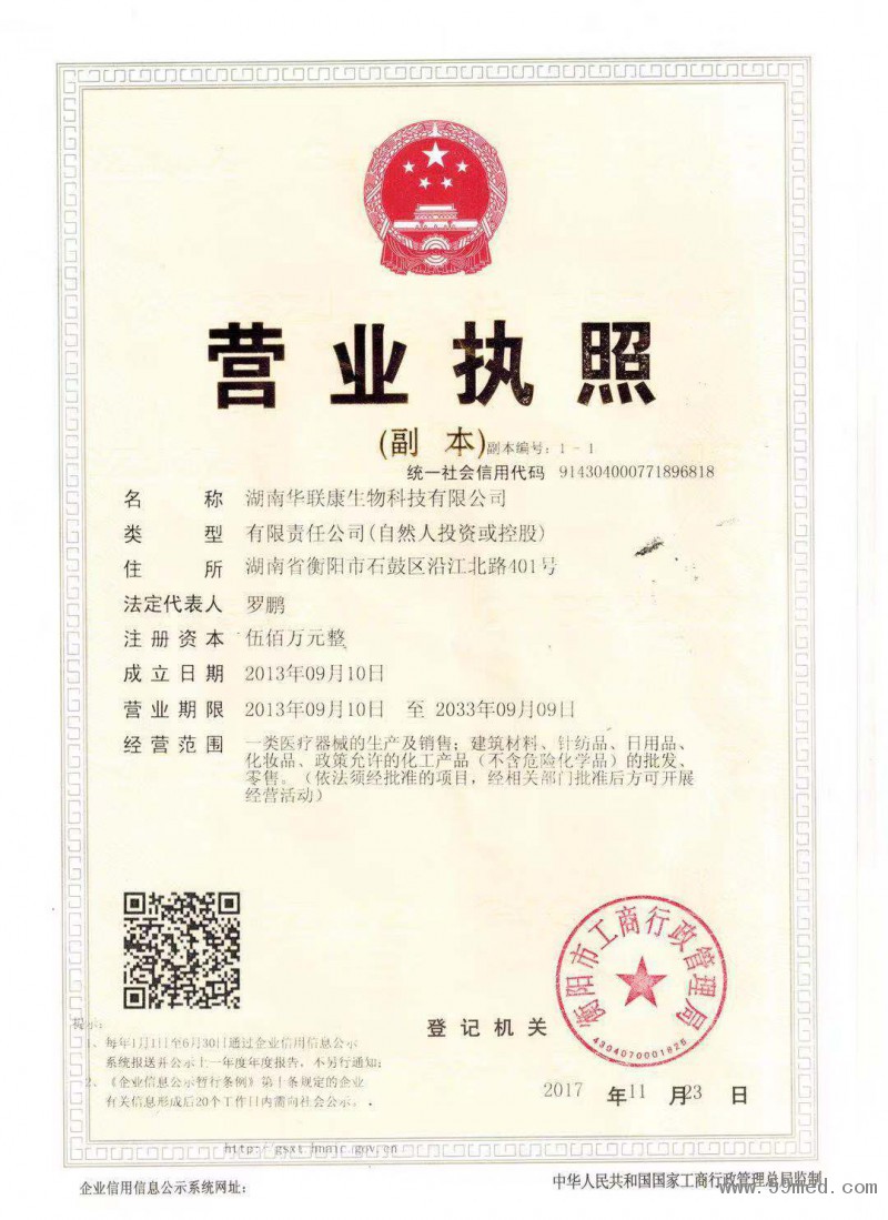 | 發(fā)證機(jī)構(gòu): | ??衡陽市工商行政管理局 | 發(fā)證時間 : | ??2017-11-23 |