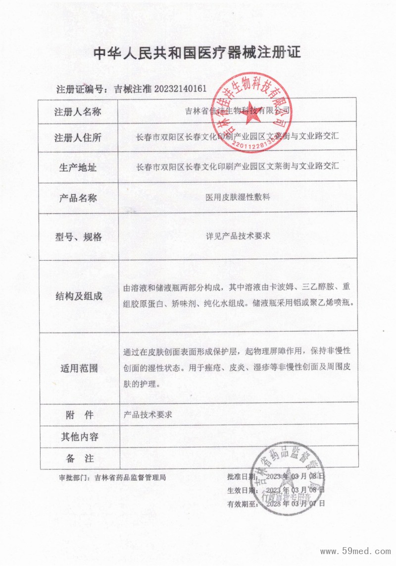 | 發(fā)證機(jī)構(gòu): | ??吉林省藥品監(jiān)督管理局 | 發(fā)證時(shí)間 : | ??2023-03-08 |