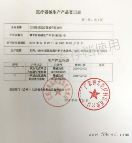榮譽(yù)資質(zhì) 醫(yī)療器械生產(chǎn)產(chǎn)品登記表