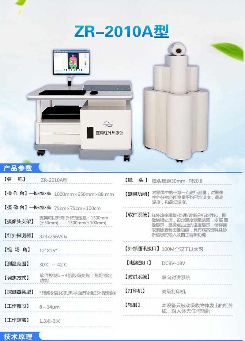 因此,使用熱像儀探測乳腺癌具有獨特的優(yōu)點。由于近年來乳腺病發(fā)病率不斷增高,而早期診斷和普查是相當(dāng)重要的,所以醫(yī)用熱像儀的應(yīng)用有著巨大的市場潛力和發(fā)展意義。