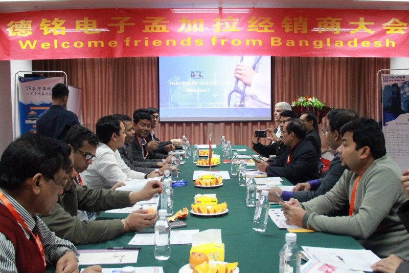 陽春三月,盎然生機,2018年3月25日,合肥德銘電子有限公司經(jīng)銷商交流會議在59醫(yī)療器械網(wǎng)會議廳隆重舉行,從孟加拉遠道而來的孟加拉國經(jīng)銷商、德銘產(chǎn)品應用科室醫(yī)生一行出席了此次會議。