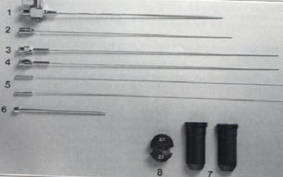 立體定向手術(shù)器由各種尺寸的穿刺套針、側(cè)孔和螺旋活檢針、鉆頭和鉆頭套、配套的塑料導(dǎo)向夾/止動(dòng)夾、轉(zhuǎn)接器和電鉆等部分組成。與弓形導(dǎo)向儀配合進(jìn)行各種立體定向手術(shù)的實(shí)施。
