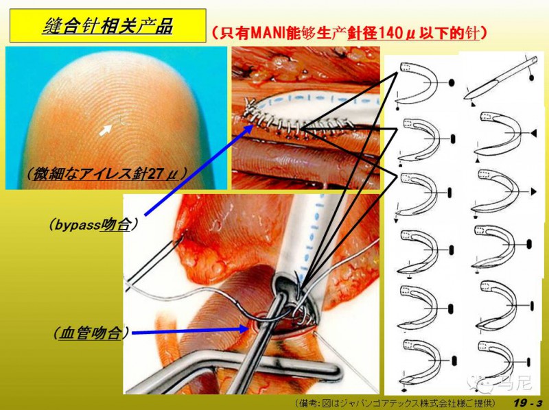 而馬尼的縫合針有如下特點
