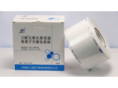 根據(jù)待滅菌物品的體積,截取合適長(zhǎng)度的包裝袋,裝入滅菌物品后兩端用封口機(jī)封口(封口溫度為120℃),將包裝袋放入滅菌器內(nèi)進(jìn)行滅菌處理。滅菌完成后,取出包裝袋觀察醫(yī)用透析紙表面的指示色塊變色情況,如果指示色塊顏色由藍(lán)色變?yōu)榧t色,說(shuō)明包裝袋已經(jīng)過(guò)過(guò)氧化氫滅菌處理。